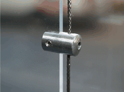 Hinweisschilder und Wegweiser mit Edelstahlhalterungen können auch mit Stahldraht an Decke oder Wand befestigt werden. Die spezielle Halterung erlaubt Schilder mit 4mm Dicke an Draht zu befestigen.Die Beschriftung bietet sich in diesem Fall als Festbeschriftung an.