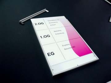 Schilder- und Wegweisertaschen sind schlicht, aber auch kostengünstig. Durch das individuelle und leichte Austauschen der Einlagen sind sie im Trend der Selbstbeschriftung. Die Größe kann auf Wunsch auch verändert werden.