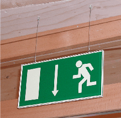 - Luxus: Acryl-Platte 3 mm, Kante poliert, rückseitig aufgebrachte Fluchtweg- oder Brandschutzzeichen, hinterlegt mit Leuchtplatte, Montageplatte oder Abdeckplatte weiß bei Deckenabhängung.